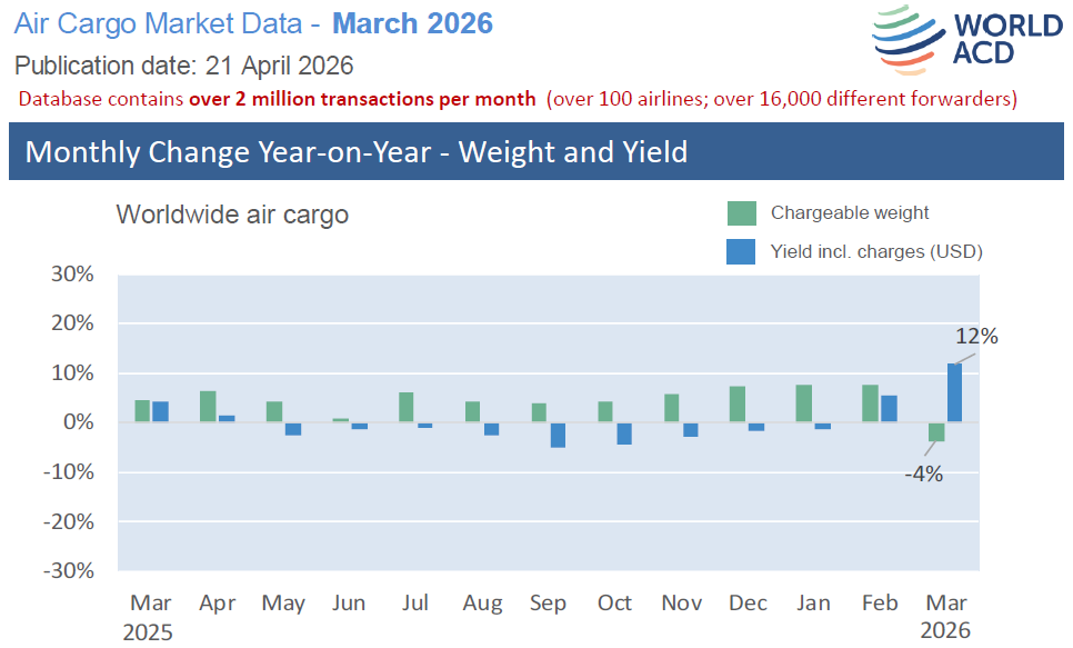 WorldACD provides subscribers with comprehensive monthly information on thousands of markets (city to city, city to country, country to country, etc.). Download the report below to view samples of our latest monthly information on air cargo yields/rates and chargeable weight.